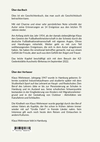 Das vorliegende Buch enthält Erinnerungen des Autors von 14 Ereignissen aus den letzten 70 Jahren. Diese haben sich im Verfasser eingebrannt, ihn emotional betroffen gemacht, mal aus einem Gefühl der Freude, aber auch aus dem Gefühl der Angst und Trauer.Dies ist ein Geschichtenbuch, das man auch als Geschichtsbuch betrachten kann. Mancher Leser wird sich noch selbst an diese Ereignisse erinnern und sein damaliges Befinden mit mit dem des Autors abgleichen, und der jüngere Leser kann diese Ereignisse als Anlass für Gespräche mit Zeitzeugen nutzen. Am Anfang steht das Jahr 1954, als der Autor als 7-jähriger den Gewinn der Fußballweltmeisterschaft in der Schweiz durch die deutsche Fußballnationalmannschaft mit eigenen Augen, Ohren und Handlungen miterlebt. Weiter geht es mit vielen Ereignissen, die im In- und Ausland passiert sind und die zu einem Teil die Welt verändert haben.Das letzte Kapitel beschäftigt sich mit dem Besuch der KZ-Gedenkstätte Auschwitz-Birkenau im September 2022