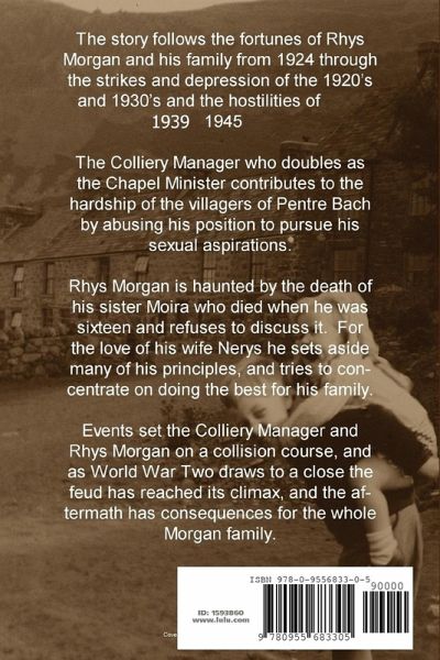 The story follows the fortunes of Rhys Morgan and his family from 1924 through the strikes and depression of the 1920's and 1930's and the hostilities of 1939 -1945 The lives of the villagers of Pentre Bach are dominated by the whims of the colliery manager who doubles as the chapel minister and contributes to the hardship of the community by abusing his position to pursue his sexual aspirations. Rhys Morgan is haunted by the death of his sister Moira who died when he was sixteen and because of his self reproach he refuses to discuss it. For the love of his wife Nerys he sets aside many of his idealistic principles, and tries to concentrate on doing the best for his family. Events set the Colliery Manager and Rhys Morgan on a collision course, and as World War Two draws to a close the feud has repercussions for the whole Morgan family.