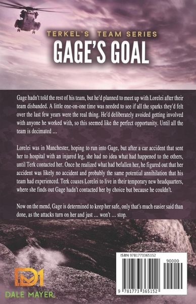 Gage hadn't told the rest of his team, but he'd planned to meet up with Lorelei after their team disbanded. A little one-on-one time was needed to see if all the sparks they'd felt over the last few years were the real thing. He'd deliberately avoided getting involved with anyone he worked with, so this seemed like the perfect opportunity. Until all the team is decimated ... Lorelei was in Manchester, hoping to run into Gage, but after a car accident that sent her to hospital with an injured leg, she had no idea what had happened to the others, until Terk contacted her. Once he realized what had befallen her, he figured out that her accident was likely no accident and probably the same potential annihilation that his team had experienced. Terk coaxes Lorelei to live in their temporary new headquarters, where she finds out Gage hadn't contacted her by choice but because he couldn't. Now on the mend, Gage is determined to keep her safe, only that's much easier said than done, as the attacks turn on her and just ... won't ... stop.