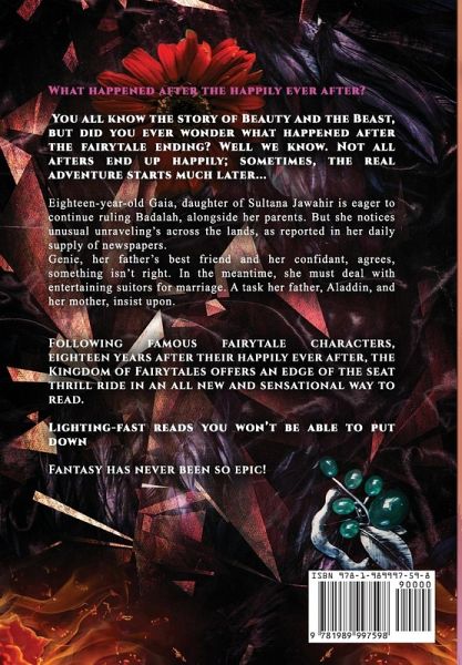 ***FULL SERIES*** What happened after the happily ever after? You all know the story of Aladdin. But did you ever wonder what happened after the fairytale ending? Well, we know. Not all afters end up happily. Sometimes the real adventure starts much later... QUEEN OF THE SUN Eighteen-year-old Gaia, daughter of Sultana Jawahir is eager to continue ruling Badalah, alongside her parents. But she notices unusual unraveling's across the lands, as reported in her daily supply of newspapers. Genie, her father's best friend and her confidant, agrees, something isn't right. In the meantime, she must deal with entertaining suitors for marriage. A task her father, Aladdin, and her mother, insist upon. HEIRESS OF SHADOWS Gaia's infatuation with Genie is quickly fading as her father's mental health is failing. To make matters worse, something is wrong with Archer, her Phoenix. Frustration seeps throughout, as she desperately searches for clues. There is something more sinister playing across the twelve kingdoms, and she's vowed to get to the bottom of it. THRONE OF THR PHOENIX Badalah is in disarray, and Genie is once again confined to his chains. Gaia has one last wish, but will she use it? And if so, for what, or whom? GODDESS OF FIRE The evil sorcerer has returned, and it's up to Gaia to challenge him using her magic. But using her magic isn't as easy as she thought. Yet, she manages to escape his grasp, fleeing into Genie's arms. She wonders if perhaps there might be a chance at love with her beloved confidant, only to have everything disrupted by the sorcerer once again. But this time, it is Genie who takes him. Will Genie succeed? Or will the sorcerer finally get control of the kingdom just as he'd planned eighteen years earlier? Following famous fairytale characters, eighteen years after their happily ever after, the Kingdom of Fairytales offers an edge of the seat thrill ride in an all new and sensational way to read. Lighting-fast reads you won't be able to put down Fantasy has never been so epic!