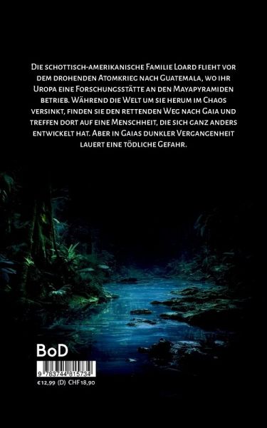 Gaia- Menschheit am Abgrund - ein Roman von Robert LottGaia erzählt die Geschichte einer Familie, die dem Atomkrieg entkommt und auf eine Menschheit trifft, die sich ganz anders entwickelt hat. Die schottisch-amerikanische Familie Loard flieht vor dem drohenden Atomkrieg von New Mexiko, USA, nach Tikal in Guatemala, wo ihr Uropa eine Forschungsstation an den Maya-Pyramiden errichtet hatte. Der befürchtete Atomkrieg findet tatsächlich statt, aber die Familie findet den Zugang zu einer anderen Welt, mit einer Menschheit, die sich seit vielen Jahren ganz anders entwickelt hat. Mit Hilfe der Technik einer verschwundenen Zivilisation haben sich die Menschen dort eine fast perfekte Welt geschaffen. Die Loards haben zunächst einige Schwierigkeiten sich in dieser Welt zurecht zu finden und müssen bald feststellen, dass in der Vergangenheit Gaias eine tödliche Gefahr lauert.