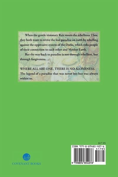 When the gentle visionary Raia meets the rebellious Thor, they both want to revive the lost paradise on earth by rebelling against the oppressive system of the Darks, which robs people of their connection to each other and Mother Earth. But the way back to paradise is not through rebellion, but through forgiveness... WHERE ALL ARE ONE, THERE IS NO ALONENESS. The legend of a paradise that was never lost but was always within us.