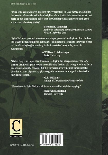 Is Earth alive? Put more rigorously, is the biosphere a self- sustaining meta-organism? This is the essence of Gaia theory: if the biosphere really is a single coherent system, then it must have something like a physiology. It must have systems and processes that perform living functions. OK, then, what systems, what processes, what functions? Gaia's Body is Tyler Volk's answer to this question. In this book, he describes the environment that enables the biosphere to exist; various ways of looking at its "anatomy" and "physiology," the major biogeographical regions such as rainforests, deserts, and tundra; the major substances the biosphere is made of; and the chemical cycles that keep it in balance. He then looks at the question of whether there are any long-term trends in earth's evolution--is Gaia growing colder? more complex?--and examines the role of humanity in Gaia's past and future. Adherents and skeptics both have often been concerned that Gaia theory contains too much goddess and too few testable hypotheses. This is the book that describes, for scientists, students, and lay readers alike, the theory's firm basis in science.
