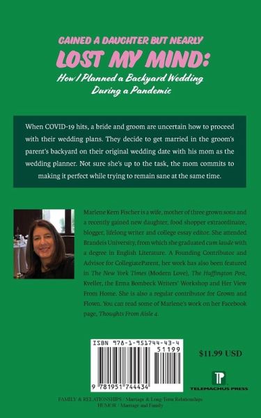 The author's son gets engaged to his long-time girlfriend and the couple starts planning their wedding. When the coronavirus turns the world upside down, the bride and groom are unsure how to proceed. After weighing their options they decide to go ahead with their original wedding date but changed the event from a 220-plus person hotel wedding in Washington D.C. to a micro-wedding in his parent's backyard in Westchester County, New York. The groom's mom becomes the wedding planner, a role she never expected. With all of her kids at home and a pandemic raging, she discovers that making the wedding perfect is harder than she anticipates. From feeding and keeping safe the army that had filled her formerly empty nest, to making the "venue" beautiful, to the Phish connection, the book is a compilation of funny and touching stories from the months leading up to the wedding and the big day itself. This book is for anyone who has ever planned a wedding or found themselves in the middle of a pandemic.