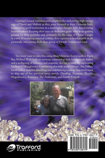 Gaining Ground continues and completes the enchanting, high-energy saga of David and Mallory as they press forward in their Christian faith, maintaining good testimonies in a marketplace fraught with deteriorating business ethics! Keeping their eyes on their own goals, they keep gaining ground for their portfolio and ultimately for the cause of Christ! Caught in a web of escalating criminal activity, they experience brushes with death personally and among their close group of friends! A must-not miss!