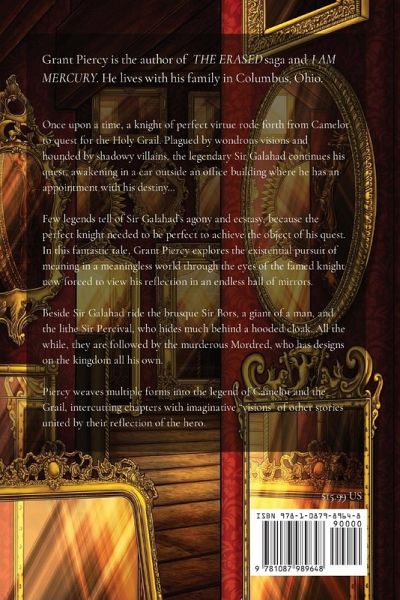 Once upon a time, a knight of perfect virtue rode forth from Camelot to quest for the Holy Grail. Plagued by wondrous visions and hounded by shadowy villains, the legendary Sir Galahad continues his quest, awakening in a car outside an office building where he has an appointment with his destiny... Few legends tell of Sir Galahad's agony and ecstasy, because the perfect knight needed to be perfect to achieve the object of his quest. In this fantastic tale, Grant Piercy explores the existential pursuit of meaning in a meaningless world through the eyes of the famed knight now forced to view his reflection in an endless hall of mirrors. Beside Sir Galahad ride the brusque Sir Bors, a giant of a man, and the lithe Sir Percival, who hides much behind a hooded cloak. All the while, they are followed by the murderous Mordred, who has designs on the kingdom all his own. Piercy weaves multiple forms into the legend of Camelot and the Grail, intercutting chapters with imaginative "visions" of other stories united by their reflection of the hero.