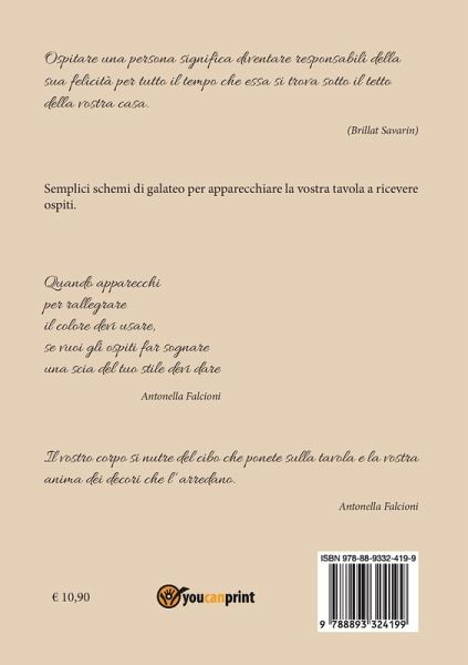 Ospitare una persona significa diventare responsabili della sua felicità per tutto il tempo che essa si trova sotto il tetto della vostra casa. ( Brillat Savarin ) Semplici schemi di galateo, con consigli per la apparecchiare la vostra tavola per ospitare per eventi formali e informali, con questo manuale da tenere sempre a portata di mano per organizzare un invito formale e informale.