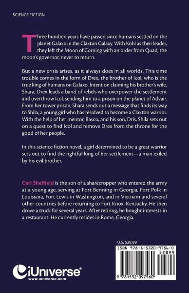 three hundred years have passed, since humans settled on a plane called Galaxo. Leaving the Moon of Corning with order from Quad never return. The Centurion and Palatonians have started an invasion Now trouble come again, this time in the form of Drex. This will lead Shila on a wild quest with her mentor Basco and son Dris on a search of a lifetime. Let the Search For Icol Begin.