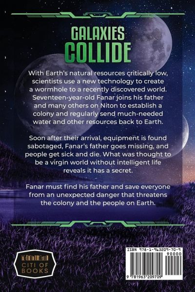 With Earth's natural resources critically low, scientists use a new technology to create a wormhole to a recently discovered world. Seventeen-year-old Fanar joins his father and many others on Niton to establish a colony and regularly send much-needed water and other resources back to Earth. Soon after their arrival, equipment is found sabotaged, Fanar's father goes missing, and - people get sick and die. What was thought to be a virgin world without intelligent life reveals it has a secret. Fanar must find his father and save everyone from an unexpected danger that threatens the colony and the people on Earth.