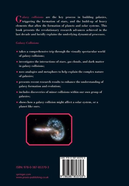 "Galaxy Collisions is big book, not physically but conceptually. ... Colour images, some appropriately from the Hubble Space Telescope, and diagrams support the text where needed throughout. ... it is refreshing to read a book that stays strictly on topic. ... Where an explanation is required to ensure understanding it is given quickly then attention is swiftly refocused back to the main subject. ... reader who has a good understanding of the key concepts of Astronomy will get a lot from this book ... ." (Paul Rumsby, Best Astronomy Books, August, 2011)