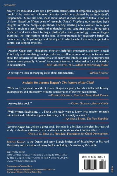"Nearly two thousand years ago a physician named Galen of Pergamon suggested that much of the variation in human behavior could be explained by an individual's temperament. Since that time, inborn disp"