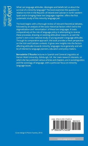 This comparative analysis of the Irish and Galican languages is framed by the persepctive that the impact on language maintenance and shift of macro-ocial factors such as political and institutional support can only be assessed adequately through 'the interpreative filter of linguistic eliefs,/attitudes and ideologies' (p. 3/4). The rationale for this and other compartive studies is that they offer 'a broader and more objective framework than can be achieved through single case studies' (p. 4) avoding the solipsism that can be found in the limited horizons of one langauge studies and benefitting from the novel insights that O'Rourke offers.' Dick Vigers, University of Southampton, Current Issues in Language PLanning, Sept. 2012