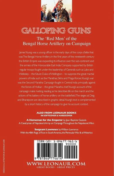 The 'Red Men' of the Bengal Horse Artillery on Campaign James Young was a young officer in the early days of the corps d'elite that was The Bengal Horse Artillery. In the first years of the nineteenth century the British Empire was expanding its influence over the sub-continent and the armies of the Honourable East India Company supported by British regular troops fought under the leadership of Generals such as Lake and Wellesley-the future Duke of Wellington-to suppress the great martial powers of India such as the Marathas, Sikhs and Mogul forces. Young's war was the Second Maratha Campaign fought in Central India principally against the forces of Holkar-the great Maratha chief. Young's account of the campaign make riveting reading as he describes life on the march and the actions of his battery of horse artillery on the battlefield. The sieges at Deig and Bharatpore are described in graphic detail. Young's text is complemented by a short history of the campaign to give his account context.