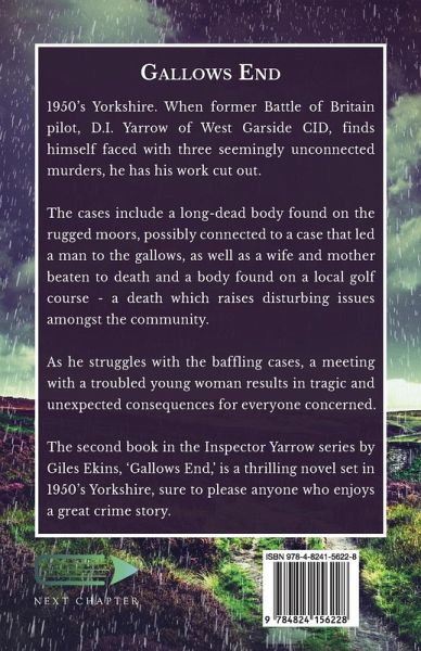 1950's Yorkshire. When former Battle of Britain pilot, D.I. Yarrow of West Garside CID, finds himself faced with three seemingly unconnected murders, he has his work cut out. The cases include a long-dead body found on the rugged moors, possibly connected to a case that led a man to the gallows, as well as a wife and mother beaten to death and a body found on a local golf course - a death which raises disturbing issues amongst the community. As he struggles with the baffling cases, a meeting with a troubled young woman results in tragic and unexpected consequences for everyone concerned. The second book in the Inspector Yarrow series by Giles Ekins, 'Gallows End,' is a thrilling novel set in 1950's Yorkshire, sure to please anyone who enjoys a great crime story.