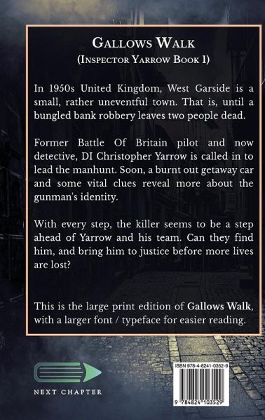 In 1950s United Kingdom, West Garside is a small, rather uneventful town. That is, until a bungled bank robbery leaves two people dead. Former Battle Of Britain pilot and now detective, DI Christopher Yarrow is called in to lead the manhunt. Soon, a burnt out getaway car and some vital clues reveal more about the gunman's identity. With every step, the killer seems to be a step ahead of Yarrow and his team. Can they find him, and bring him to justice before more lives are lost? This is the large print edition of Gallows Walk, with a larger font / typeface for easier reading.