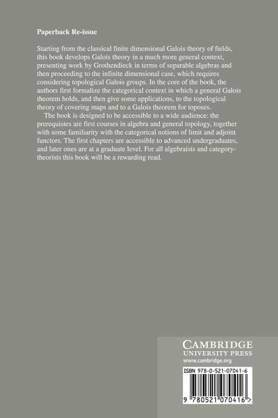 Develops Galois theory in a much more general context than the undegraduate-style Galois theory of fields. In particular, the relationship with category theory is emphasized. Treats work by leading researchers in the field, and includes a comprehensive bibliography and index. Will be interesting for algebraists and category theorists.
