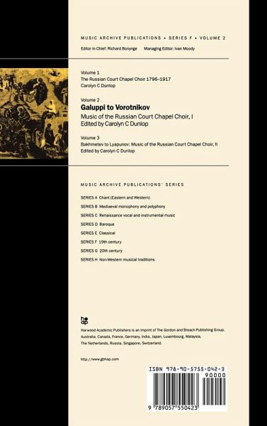 A performing edition of nineteenth century Russian choral pieces by a range of composers in a variety of styles, this volume was prepared to accompany the book The Russian Court Chapel Choir by Carolyn C. Dunlop.