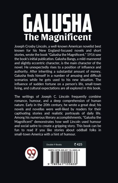 Joseph Crosby Lincoln, a well-known American novelist best known for his New England-focused novels and short stories, wrote the book "Galusha the Magnificent." 1916 saw the book's initial publication. Galusha Bangs, a mild-mannered and slightly eccentric character, is the main character of the novel. He unexpectedly rises to a position of influence and authority. After inheriting a substantial amount of money, Galusha finds himself in a number of amusing and difficult scenarios while he gets used to his new situation. The influence of sudden fortune on a person's life, small-town living, and cultural expectations are all explored in this book. The writings of Joseph C. Lincoln frequently combine romance, humour, and a deep comprehension of human nature. Early in the 20th century, he wrote a great deal; his novels and novellas were well-liked by readers for their captivating stories and realistic portrayals of daily life. Among his numerous literary accomplishments, "Galusha the Magnificent" demonstrates how well Lincoln used humour and social satire to create a gripping story. This book can be fun to read if you like stories about oddball folks in small-town America with a hint of humour.