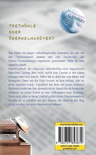 Was haben ein junger, verheißungsvoller Journalist, den alle nur den "Tschornalisten" nennen und eine Societylady die Charity-Veranstaltungen organisiert, gemeinsam? Mehr als man zunächst glaubt.Hans-Friedrich, der ehrgeizige Schreiberling einer angesehenen Münchner Zeitung ahnt nicht, welch eine Lawine er mit einem einzigen Interview lostritt. Dabei hat er doch nur eine harm- und belanglose Dame aus der High Society zu dem befragt, was sie gerne tauschen würde. Eigentlich hat diese mit jenen veralteten Methoden nichts am Hut, dennoch ist ein Tausch für die beiden der Schlüssel zu einem Schritt in eine vollkommen neue Richtung. Doch nicht allen in ihrem Umfeld gefällt dieses Überholmanöver. Werden sie es schaffen aus den Steinen, die ihnen in den Weg gelegt werden, ein neues Business aufzubauen?