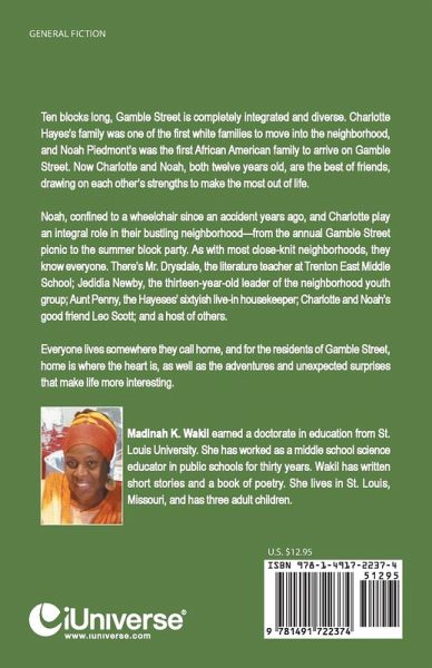 Ten blocks long, Gamble Street is completely integrated and diverse. Charlotte Hayes?s family was one of the first white families to move into the neighborhood, and Noah Piedmont?s was the first African American family to arrive on Gamble Street. Now Charlotte and Noah, both twelve years old, are the best of friends, drawing on each other?s strengths to make the most out of life. Noah, confined to a wheelchair since an accident years ago, and Charlotte play an integral role in their bustling neighborhood?from the annual Gamble Street picnic to the summer block party. As with most close-knit neighborhoods, they know everyone. There?s Mr. Drysdale, the literature teacher at Trenton East Middle School; Jedidia Newby, the thirteen-year-old leader of the neighborhood youth group; Aunt Penny, the Hayeses? sixtyish live-in housekeeper; Charlotte and Noah?s good friend Leo Scott; and a host of others. Everyone lives somewhere they call home, and for the residents of Gamble Street, home is where the heart is, as well as the adventures and unexpected surprises that make life more interesting.