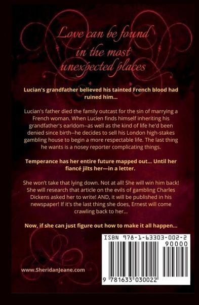 Lucian's grandfather believed his tainted French blood had ruined him... Lucian's father was a family outcast until his death for the sin of marrying a French woman. When Lucien finds himself inheriting his grandfather's earldom--as well as the kind of life he'd been denied since birth--he decides to sell his high-stakes gambling house in London and begin a more respectable life. The last thing he wants is a nosey reporter complicating things. Temperance has her entire future mapped out... Until her fiancé jilts her- in a letter. She won't take that lying down. Not at all! She will win him back! She will research that article on the evils of gambling Charles Dickens asked her to write! AND, it will be published in his newspaper! To top it off, Ernest will come crawling back to her... Now, if she can just figure out how to make it all happen...