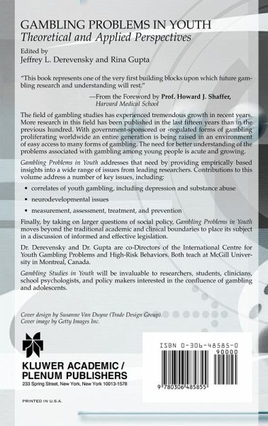 Gambling Problems in Youth will be invaluable to researchers, students, clinicians, school psychologists, and policy makers interested in the confluence of gambling and adolescents.