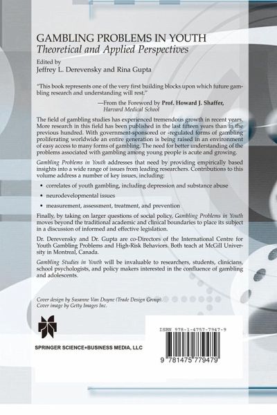 Howard J. Shaffer, Ph. D. More than 20 years ago, I first noted that young people in North America were growing up in a context of legalized gambling for their entire lifetime. By the 1980s, for young people, gambling had become an average and expectable part of the social landscape. Amid legal opportunities to gamble in all but two of the United States and with illicit opportunities to gamble in every state, gambling is now ubiquitous in America. With few social sa- tions to limit a young person's interest in gambling-like their adult co- terparts-young people now gamble in larger numbers and for seemingly higher stakes. Gradually, gambling-related problems became more visible for young people and the culture slowly but increasingly took notice. By the late 1990s, every sector of American and Canadian society had started to c- sider the effects of legalized gambling on youth. For different reasons, r- resentatives of the gambling and health care industries led the movement to prevent youthful gambling and reconcile existing problems whenever p- sible. Scientists also recognized that there was much to be learned by stu- ing young gamblers. Toward the end of the 20th century, there was a rapid increase in gambling research focusing on developmental issues; half of what is known about gambling emerged during the 1990s. This volume represents an important event in the continuing growth of a field.