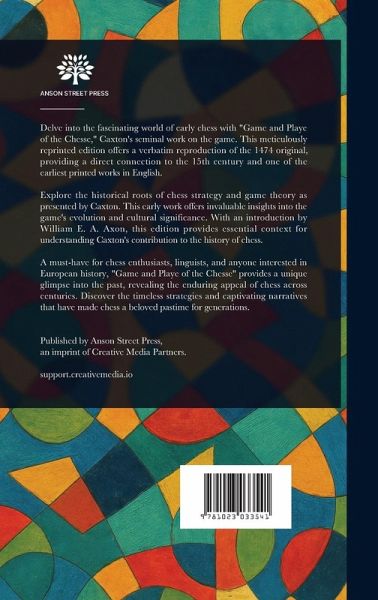 Delve into the fascinating world of early chess with "Game and Playe of the Chesse," Caxton's seminal work on the game. This meticulously reprinted edition offers a verbatim reproduction of the 1474 original, providing a direct connection to the 15th century and one of the earliest printed works in English. Explore the historical roots of chess strategy and game theory as presented by Caxton. This early work offers invaluable insights into the game's evolution and cultural significance. With an introduction by William E. A. Axon, this edition provides essential context for understanding Caxton's contribution to the history of chess. A must-have for chess enthusiasts, linguists, and anyone interested in European history, "Game and Playe of the Chesse" provides a unique glimpse into the past, revealing the enduring appeal of chess across centuries. Discover the timeless strategies and captivating narratives that have made chess a beloved pastime for generations. This work has been selected by scholars as being culturally important, and is part of the knowledge base of civilization as we know it. This work is in the public domain in the United States of America, and possibly other nations. Within the United States, you may freely copy and distribute this work, as no entity (individual or corporate) has a copyright on the body of the work. Scholars believe, and we concur, that this work is important enough to be preserved, reproduced, and made generally available to the public. We appreciate your support of the preservation process, and thank you for being an important part of keeping this knowledge alive and relevant.