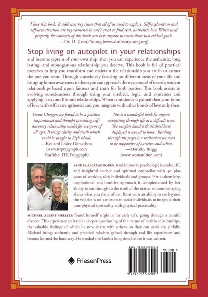 Stop living on autopilot in your relationships and become captain of your own ship, then you can experience the authentic, long lasting, and monogamous relationship you deserve. This book is full of practical exercises to help you transform and maintain the relationship you are in or attract the one you want. Through consciously focusing on different areas of your life and bringing honest awareness to them you can approach the new model of interdependent relationships based upon fairness and truth for both parties. This book assists in evolving consciousness through using your intellect, logic, and awareness and applying it to your life and relationships. When confidence is gained then your bond of love with self is strengthened and you integrate with other bonds of love only then.