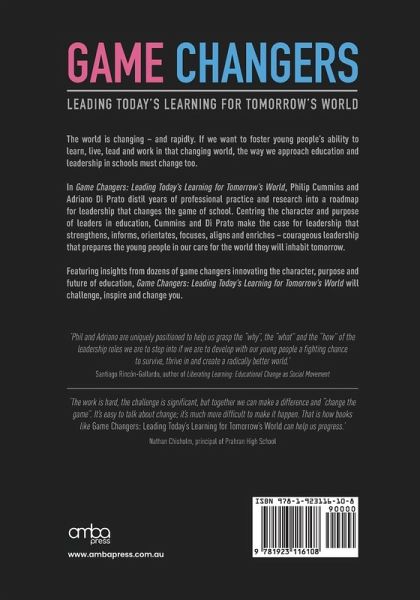 The world is changing - and rapidly. If we want to foster young people's ability to learn, live, lead and work in that changing world, the way we approach education and leadership in schools must change too. In Game Changers: Leading Today's Learning for Tomorrow's World, Philip Cummins and Adriano Di Prato distil years of professional practice and research into a roadmap for leadership that changes the game of school. Centring the character and purpose of leaders in education, Cummins and Di Prato make the case for leadership that strengthens, informs, orientates, focuses, aligns and enriches - courageous leadership that prepares the young people in our care for the world they will inhabit tomorrow. Featuring insights from dozens of game changers innovating the character, purpose and future of education, Game Changers: Leading Today's Learning for Tomorrow's World will challenge, inspire and change you.