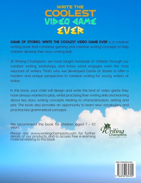 Game of Stories: Write the coolest video game ever is a creative writing book that combines gaming and creative writing concepts to help children develop their story writing skills. At Writing Champions, we have taught hundreds of children through our creative writing workshops, and know what engages even the most reluctant of writers. That's why we developed Game of Stories to offer a modern and unique perspective to creative writing for young writers of today. In this book, your child design and write the kind of video game they have always wanted to play, whilst practising their writing skills and learning about key story writing concepts relating to characterisation, setting and plot. In six comprehensive modules, your child will: Design a video game character; Develop the setting for their video game; Design a plot and storyline relating to their video game; and Bring it all together into a climactic end, providing a sense of completion. The book also provides an opportunity to learn new vocabulary and practice key grammatical concepts. We recommend this book for children aged 7 - 10 years. Please visit www.writingchampions.com for further details of our products, and to access free e-learning material relating to this book.