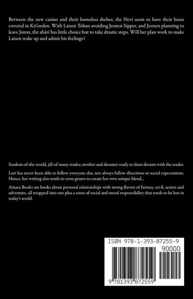 Between the new casino and their homeless shelter, the Neví seem to have their bases covered in Kri'enden. With Laisen Toban avoiding Jessten Sipper, and Jessten planning to leave Joton, the abári has little choice but to take drastic steps. Will her plan work to make Laisen wake up and admit his feelings?