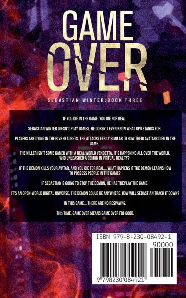 If you die in the game. You die for real. Sebastian Winter doesn't play games. He doesn't even know what RPG stands for. Players are dying in their VR headsets. The attacks eerily similar to how their avatars died in the game. The killer isn't some gamer with a real-world vendetta. It's happening all over the world. Who unleashed a demon in virtual reality? If the demon kills your avatar, and you die for real... what happens if the demon learns how to possess people in the game? If Sebastian is going to stop the demon, he has the play the game. It's an open-world digital universe. The demon could be anywhere. How will Sebastian track it down? In this game... there are no respawns. This time, game over means game over for good.