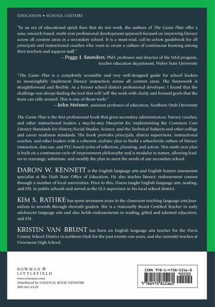 The Game Plan is designed to be used by secondary instructional leaders who want to make a lasting impact on the culture of literacy and data in their school(s). The book focuses on implementing the Common Core Standards for Literacy in History/Social Studies, Science, and Technical Subjects and other college and career readiness literacy standards. It provides a practical, semester-by-semester plan to enact literacy strategies, use data, and create change using PLC principles.