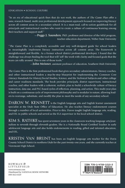 The Game Plan is designed to be used by secondary instructional leaders who want to make a lasting impact on the culture of literacy and data in their school(s). The book focuses on implementing the Common Core Standards for Literacy in History/Social Studies, Science, and Technical Subjects and other college and career readiness literacy standards. It provides a practical, semester-by-semester plan to enact literacy strategies, use data, and create change using PLC principles.