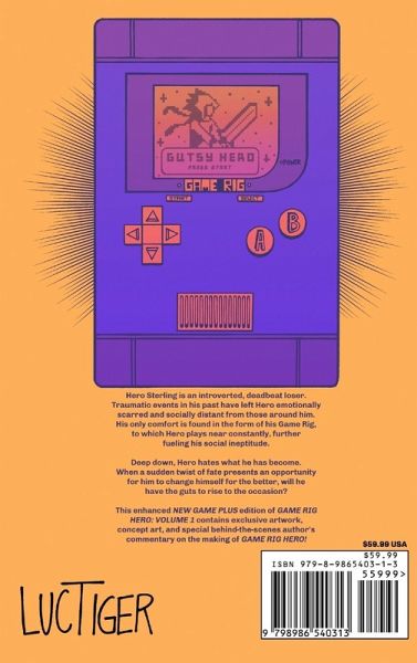 This enhanced NEW GAME PLUS edition of GAME RIG HERO: VOLUME 1 contains exclusive artwork, concept art, and special behind-the-scenes author's commentary on the making of GAME RIG HERO! Hero Sterling is an introverted, deadbeat loser. Traumatic events in his past have left Hero emotionally scarred and socially distant from those around him. His only comfort can be found in the form of his Game Rig, to which Hero plays near constantly, further fueling his social ineptitude. Deep down, Hero hates what he has become. When a sudden twist of fate presents an opportunity for Hero to change himself for the better, will he have the guts to rise to the occasion?