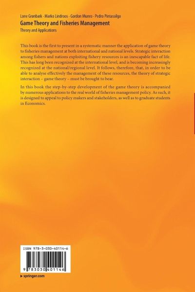 In this book the step-by-step development of the game theory is accompanied by numerous applications to the real world of fisheries management policy. As such, it is designed to appeal to policy makers and stakeholders, as well as to graduate students in Economics.