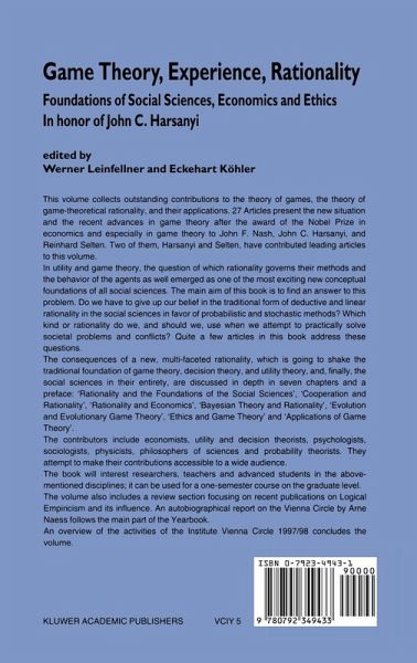 Articles.- Game Theory, Experience, Rationality.- Counterproductive Rationality.- Rationally Coping With Lapses From Rationality.- Do Rational People Make Mistakes?.- Rationality and Knavery.- Structural Rationality in Game Theory.- Attractions to and Repulsions From Chance.- Agreeing to Disagree: Harsanyi and Aumann.- Rethinking Rational Cooperation.- Automata and Inner States for Repeated Games.- Towards Bounded Rationality within Rational Expectations - Some Comments from an Economic Point of View.- Macroeconomics and Behavioral Finance A Tale of Two Disciplines.- Bayesian Subjunctive Conditionals for Games and Decisions.- Prediction, Bayesian Deliberation and Correlated Equilibrium.- Consequentialism and Bayesian Rationality in Normal Form Games.- Game Theory, Sociodynamics, and Cultural Evolution.- Microscopic Foundation of Stochastic Game Dynamical Equations.- Uniform Barriers and Evolutionarily Stable Sets.- Equilibrium Selection via Travelling Waves.- Rational vs. Adaptive Egoism in Support Networks: How Different Micro Foundations Shape Different Macro Hypotheses.- Evolutionary Ethics.- A Preference-Based Theory of Well-Being and a Rule-Utilitarian Theory of Morality.- Variability, Uncertainty, and the Emergence of Firms and Markets.- A Game Theory of Logic - A Logic of Game Theory.- Learning with Hazy Beliefs.- A Game-Theoretic Model of the War in Chechnya.- Information and Uncertainty: Power, Profits and Morality.- Report - Documentation.- The Spirit of the Vienna Circle Devoted to Questions of Lebens- and Weltauffassung.- "Sicher ist sicher".- Review Essay.- Scientific Emigration.- Reflections on the Austrian Knowledge Bases.- Reviews.- Hans Hahn, Collected Works, Volume 2 and 3, edited by Leopold Schmetterer and Karl Sigmund.- Kurt Gödel,Collected Works, vol.3.- John W. Dawson, Jr., Logical Dilemmas. The Life and Work of Kurt Gödel.- Bruno de Finetti, Filosofia della probabilità.- Friedrich Stadler, Studien zum Wiener Kreis.- Paolo Parrini, Conoscenza e Realtà. Saggio di filosofia positiva.- Michael Heidelberger, Die innere Seite der Natur. Gustav Theodor Fechners Wissenschaftlich philosophische Weltauffassung.- Martin Carrier, The Completeness of Scientific Theories.- Jan Faye, Niels Bohr: His Heritage and Legacy Jan Faye, Henry J. Folse (eds.), Niels Bohr and Contemporary Philosophy.- Christian Thiel, Philosophie und Mathematik.- Jesus Padilla Gálvez (ed.), El Cìrculo de Viena, Reconsiderado.- Kurt Blaukopf, Pioniere empiristischer Musikforschung.- Kurt Blaukopf (Ed.), Philosophie, Literatur und Musik im Orchester der Wissenschaften.- Hans Sluga/David G. Stern (Eds.), The Cambridge Companion to Wittgenstein.- Activities of the Institute Vienna Circle.- Survey 1997.- Preview 1998.- Index of Names.