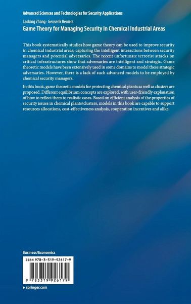 In this book, game theoretic models for protecting chemical plants as well as clusters are proposed. Different equilibrium concepts are explored, with user-friendly explanation of how to reflect them to realistic cases. Based on efficient analysis of the properties of security issues in chemical plants/clusters, models in this book are capable to support resources allocations, cost-effectiveness analysis, cooperation incentives and alike.