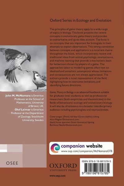 John McNamara is Emeritus Professor of Mathematics and Biology at the University of Bristol, UK. After competing his doctorate on black holes in 1976, he changed his research focus to animal behaviour and evolutionary biology. In these fields he has developed approaches to modelling behaviour, particularly approaches based on state variables. In studying animal behaviour his objective has been to provide theoretical explanations of known phenomena and to motivate and steer the direction of new experiments. Areas in which he has contributed include foraging theory, life history theory, and game theory. Olof Leimar is Emeritus Professor of Zoology at Stockholm University, Sweden. After studying theoretical physics in Stockholm, he switched to biology and completed his doctorate in 1988 with a thesis on game-theory analysis of animal fighting. In modelling animal behaviour, he introduces behavioural mechanisms, including mechanisms from learning psychology to achieve greater biological realism. In addition to fighting behaviour, he has applied this approach to the evolution of warning colouration and mimicry. Other fields he has worked in include sex allocation, mutualism, life-history theory, developmental plasticity and phenotype determination. He develops mathematical models, but he has also been involved in experimental work in his areas of interest.