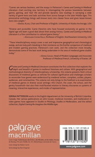 "Games are serious business, and the essays in Serina Patterson's Games and Gaming in Medieval Literature chart exciting new territory in interrogating the porous boundaries between games, gaming, and 'real' life and provide dynamic new readings in surveying a wide variety of game texts and ludic activities from across Europe in the later Middle Ages. This provocative anthology brings well-known texts into clearer focus and gives lesser-known texts new weight." - Daniel Kline, Chair and Professor of English, University of Alaska Anchorage, USA