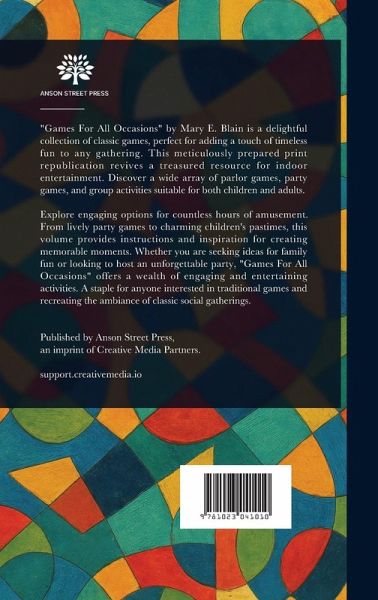 "Games For All Occasions" by Mary E. Blain is a delightful collection of classic games, perfect for adding a touch of timeless fun to any gathering. This meticulously prepared print republication revives a treasured resource for indoor entertainment. Discover a wide array of parlor games, party games, and group activities suitable for both children and adults. Explore engaging options for countless hours of amusement. From lively party games to charming children's pastimes, this volume provides instructions and inspiration for creating memorable moments. Whether you are seeking ideas for family fun or looking to host an unforgettable party, "Games For All Occasions" offers a wealth of engaging and entertaining activities. A staple for anyone interested in traditional games and recreating the ambiance of classic social gatherings. This work has been selected by scholars as being culturally important, and is part of the knowledge base of civilization as we know it. This work is in the public domain in the United States of America, and possibly other nations. Within the United States, you may freely copy and distribute this work, as no entity (individual or corporate) has a copyright on the body of the work. Scholars believe, and we concur, that this work is important enough to be preserved, reproduced, and made generally available to the public. We appreciate your support of the preservation process, and thank you for being an important part of keeping this knowledge alive and relevant.