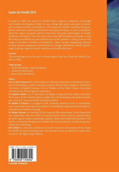 The proceedings covers the peer-reviewed papers from the Games for Health Conference 2014.