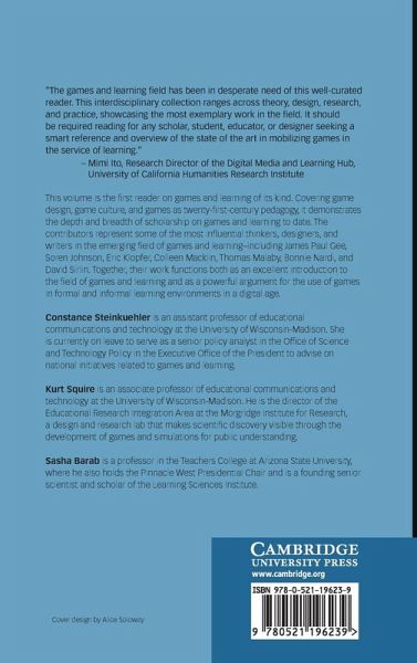 Part I. Games as Designed Experience: 1. Videogames as designed experience: section one Kurt Squire; 2. Designed cultures Kurt Squire; 3. Theme is not meaning: who decides what a game is about? Soren Johnson; 4. Our cheatin' hearts Soren Johnson; 5. Playing the odds Soren Johnson; 6. Nurturing lateral leaps in game design Nathan McKenzie; 7. Uncharted 2: among thieves - how to become a hero Drew Davidson and Richard Lemarchand; 8. Interview with harmonix Greg Lopiccolo, Kurt Squire and Sarah Chu; 9. Yomi: spies of the mind David Sirlin; Part II. Games as Emergent Culture: 10. Videogames as emergent culture: section two Constance Steinkuehler; 11. Nurturing affinity spaces and game-based learning James Paul Gee and Elisabeth Hayes; 12. Apprenticeship in massively multiplayer online games Constance Steinkuehler and Yoonsin Oh; 13. Theorycrafting: the art and science of using numbers to interpret the world Trina Choontanom and Bonnie Nardi; 14. Culture and community in a virtual world for young children Rebecca W. Black and Stephanie M. Reich; 15. Culture vs. architecture: second life, sociality, and the human Thomas M. Malaby; 16. Participatory media spaces: a design perspective on learning with media and technology in the twenty-first century Erica Rosenfeld Halverson; Part III. Games as a Twenty-First-Century Curriculum: 17. Videogames as a twenty-first-century curriculum: section three Sasha Barab; 18. Prediction and explanation as design mechanics in conceptually integrated digital games to help players articulate the tacit understandings they build through gameplay Douglas B. Clark and Mario Martinez-Garza; 19. Game-based curricula, personal engagement, and the modern prometheus design project Sasha Barab, Patrick Pettyjohn, Melissa Gresalfi and Maria Solomou; 20. Discovering familiar places: learning through mobile place-based games Bob Coulter, Eric Klopfer, Josh Sheldon and Judy Perry; 21. Developing game fluencies with scratch: realizing game design as an artistic process Yasmin B. Kafai and Kyle A. Peppler; 22. 'Freakin' hard': game design and issue literacy Colleen Macklin and John Sharp; 23. Models of situated action: computer games and the problem of transfer David Williamson Shaffer.