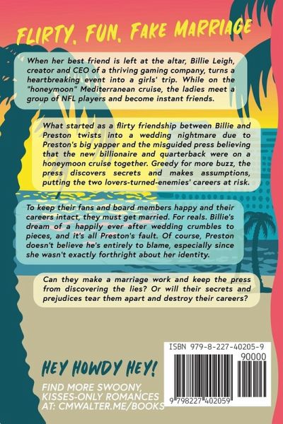 She's a gamer, he's a player. Together they fool the world. A simple Mediterranean cruise to soothe a broken heart spirals into a fake marriage, all thanks to the twisted words of a loud-mouthed quarterback. When her best friend is left at the altar, Billie Leigh, creator and CEO of a thriving gaming company, turns a heartbreaking event into a girls' trip. While on the "honeymoon" Mediterranean cruise, the ladies meet a group of NFL players and become instant friends. What started as a flirty friendship between Billie and Preston twists into a wedding nightmare due to Preston's big yapper and the misguided press believing that the new billionaire and quarterback were on a honeymoon cruise together. Greedy for more buzz, the press discovers secrets and makes assumptions, putting the two lovers-turned-enemies' careers at risk. To keep their fans and board members happy and their careers intact, they must get married. For reals. Billie's dream of a happily ever after wedding crumbles to pieces, and it's all Preston's fault. Of course, Preston doesn't believe he's entirely to blame, especially since she wasn't exactly forthright about her identity. Can they make a marriage work and keep the press from discovering the lies? Or will their secrets and prejudices tear them apart and destroy their careers? Games of a Billionaire is a swoony, kissing-only/no-spice, clean-language romance comedy.