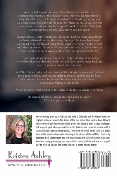 From the balcony of his house, Mike Haines can see the quiet, commonplace beauty of the Holliday farm. But what he remembers is Dusty, the little sister of his high school girlfriend, who grew up there. As a teen, Dusty had gone off the rails, but when she was a kid, she was sweet, she was funny and she had a special bond with Mike. After high school, she took off and Mike never saw her again. Tragedy strikes Dusty's family and she comes back to town. Mike thinks she hasn't changed back to the sweet, funny girl he knew but instead continued to be selfish and thoughtless, leaving her family alone to deal with their mourning. He seeks her out and confronts her in an effort to understand what went wrong and to force her to sort herself out. He finds out quickly he's wrong about Dusty Holliday. Very wrong. After Mike discovers that, the bond they had years before snaps back into place in ways he would never suspect. But Mike Haines had a bad marriage and then he played games of the heart for a good woman...and lost. In order to protect himself and his kids, he's cautious, he's careful to read the signs and he's not interested in finding a woman he has to fix. When he learns what happened to Dusty, he thinks she needs to be fixed. He swings, he misses, and in this new game of hearts, Mike just got strike three.