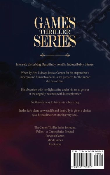 Intensely disturbing. Beautifully horrific. Indescribably intense. When Ty Aris kidnaps Jessica Connor for his stepbrother's underground film network, he is not prepared for the impact she has on him. His obsession with her lights a fire under his ass to get out of the ungodly business with his stepbrother. But the only way to leave the business is in a body bag. In the dark plane between life and death, Ty is given a choice: save his soulmate or save his very soul.¿The Games Thriller Series includes:Fallen - A Games Series PrequelSurvival GamesMind GamesEnd Game