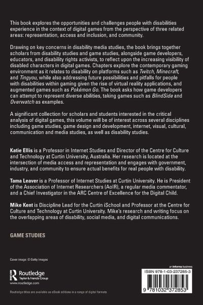 A significant collection for scholars and students interested in the critical analysis of digital games, this volume will be of interest across several disciplines including game studies, game design and development, internet, visual, cultural, communication and media studies, as well as disability studies.