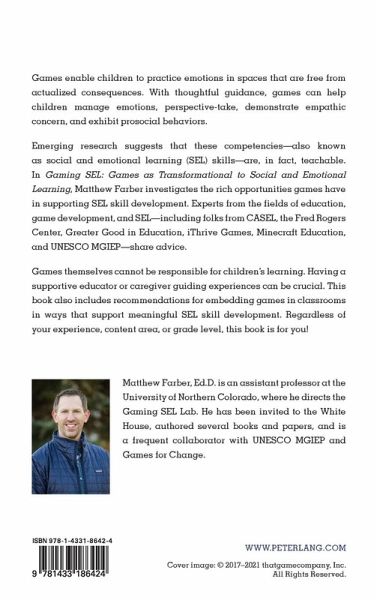 "Matthew Farber's book gives the reader a compelling and nuanced tour of a very important subject-social and emotional learning and the role that games can play in supporting it. I would encourage anyone looking for a comprehensive and accessible introduction to this topic to read this book! I particularly appreciate Farber's broad knowledge of game design efforts in this area, as well as his grasp of related literature."-Katherine Isbister, Professor of Computational Media, University of California, Santa Cruz; author of How Games Move Us: Emotion by Design