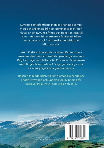 Kuvade, sextiofemåriga Monika i Karlstad fattar mod och skiljer sig från sin dominanta man och flyttar till jämnåriga vännen Birgit, änka sedan några år. Med en rejäl slant efter skilsmässan, vill Monika njuta av sin nyvunna frihet och flyger till Nice. Där blir hon stormande förälskad, både i en fransman och i medeltidsbyn Villars-sur-Var. Åter i Karlstad kan Monika varken glömma fransmannen eller byn och övertalar Birgit att följa med tillbaka till Provence. Tillsammans med Birgits blandrashund Fingal ger de sig av på en äventyrlig bilresa genom Europa till Provence. Men allt blir inte som…mehr